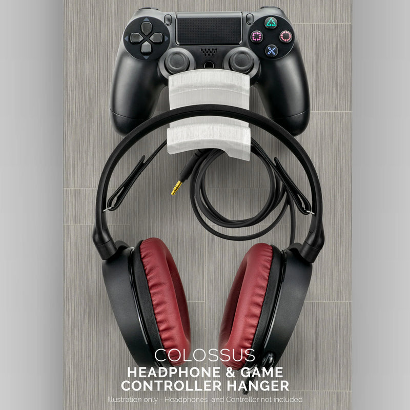 Hang all your controllers and headphones neatly and conveniently out of the way, preventing damage and keeping your game-space clutter free and organized.