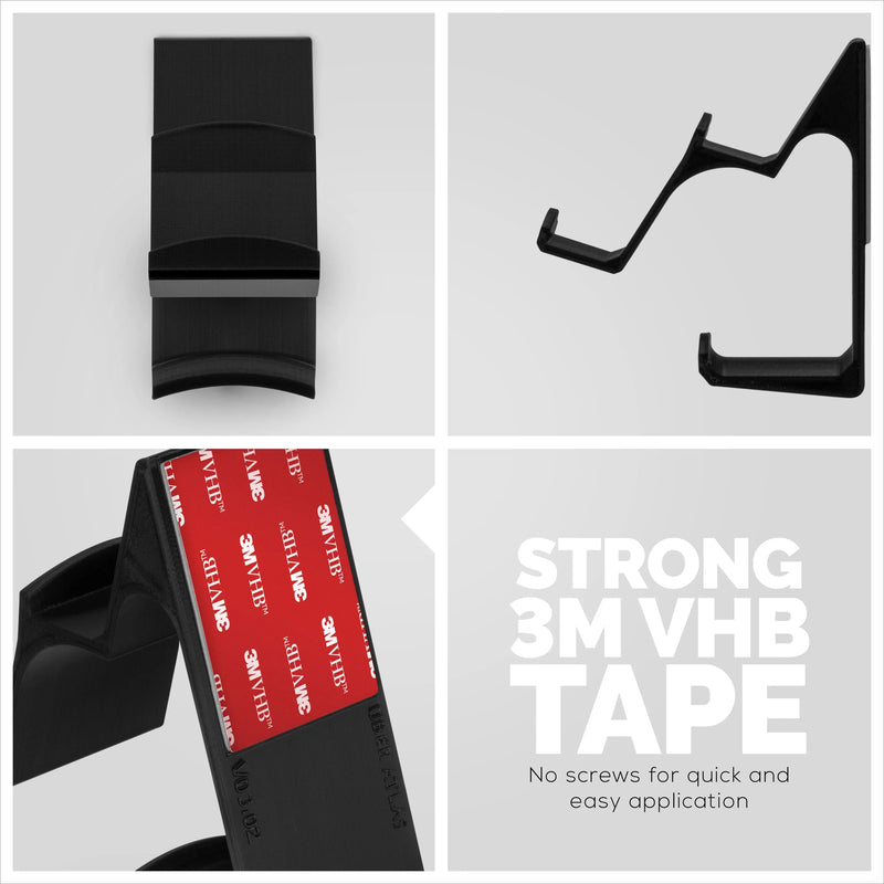The Uber Atlas comes with 3M VHBTM tape pre-fitted and can be installed almost anywhere - on desks, shelves, cabinets, glass surfaces, rear of the TV/monitor, and many more.